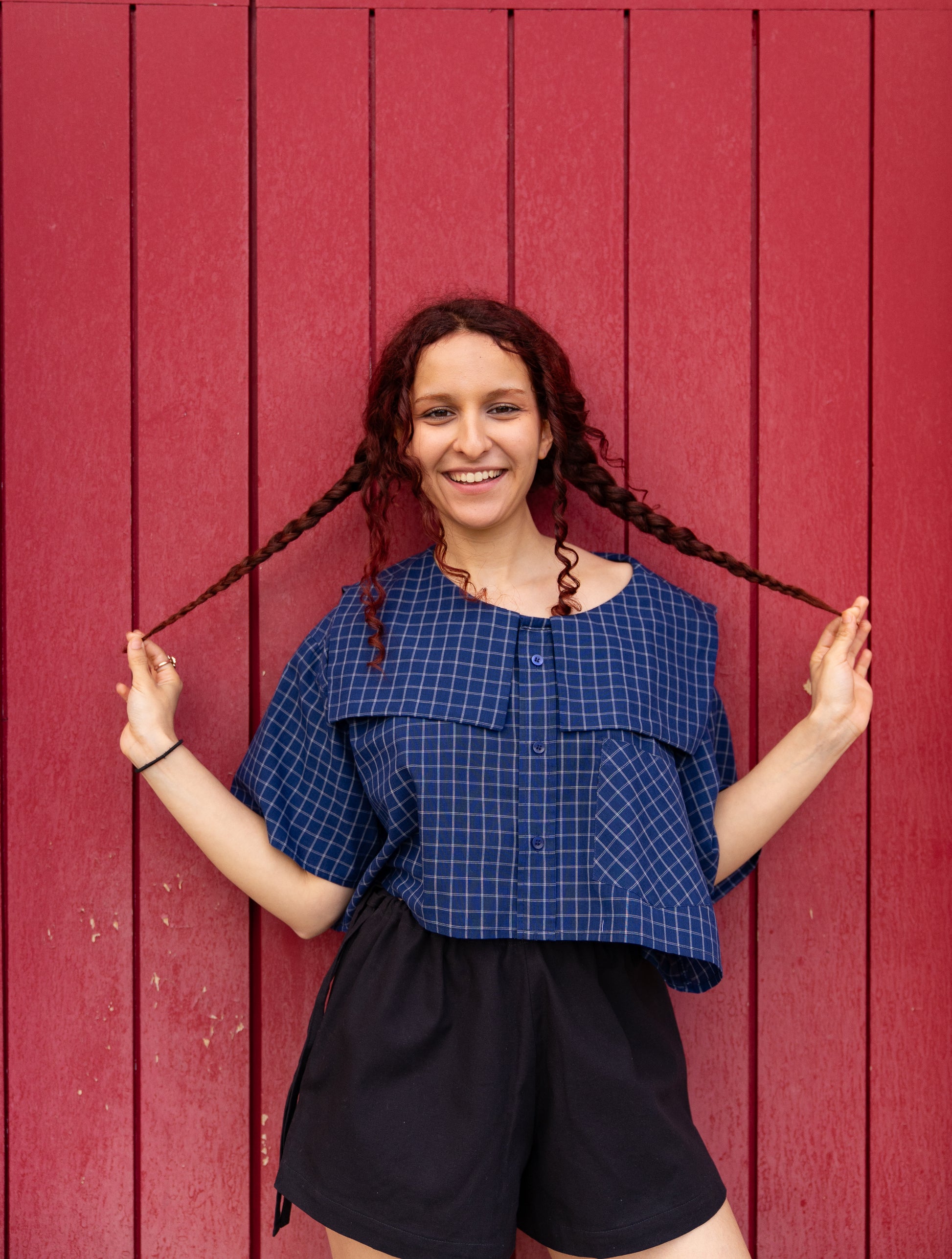 La chemise Dani est une chemise de seconde main retravaillée avec un maxi col carré.