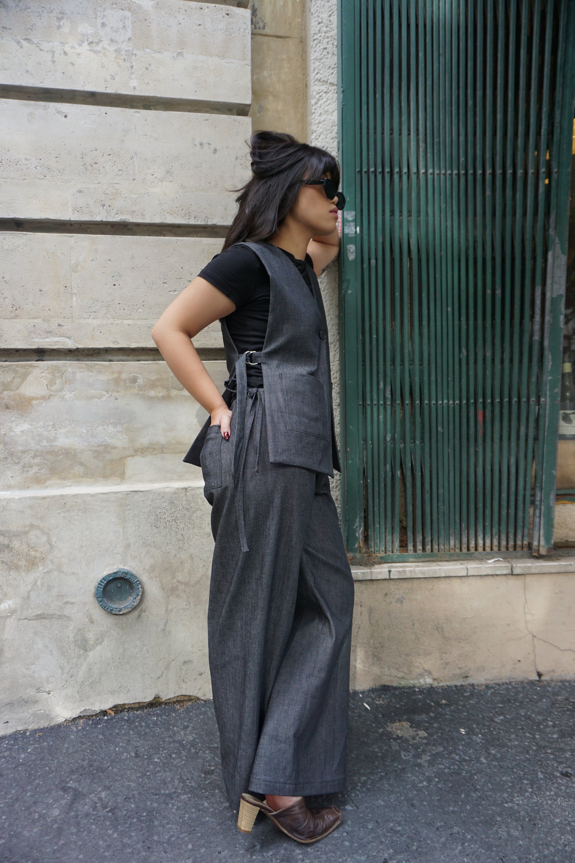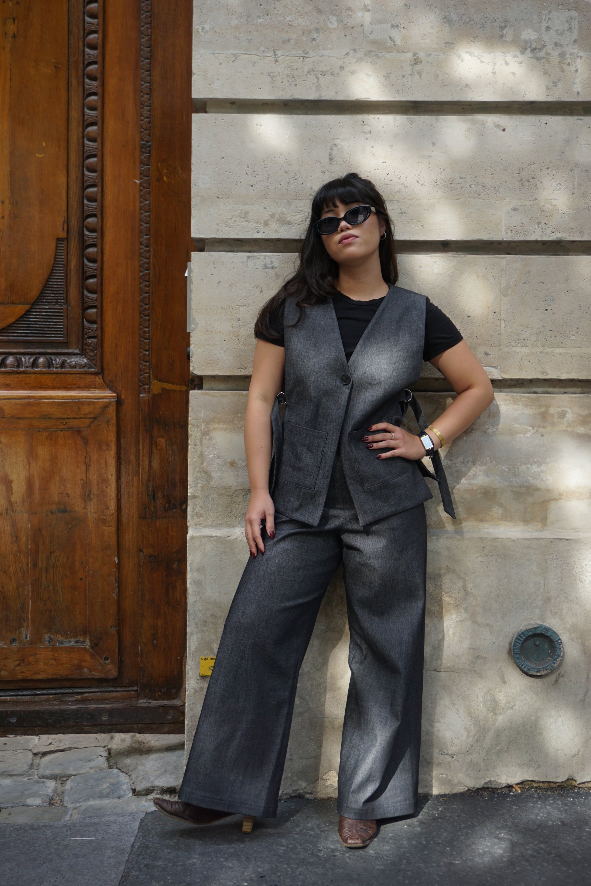 Le pantalon Ertha en denim gris foncé